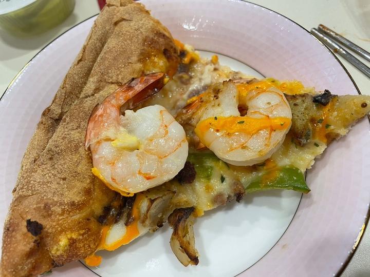 괜찮아 보이고 맛도 괜찮아. 피자의 소스는 꽤 매콤한데 개인적으로 소스가 걸쭉하면 더 좋을 것 같아요. 피자는 씹을수록 씹을수록 새우, 구운 고기, 치즈, 각종 야채의 조합을 느끼며 조화로운 맛을 만들어낸다.
