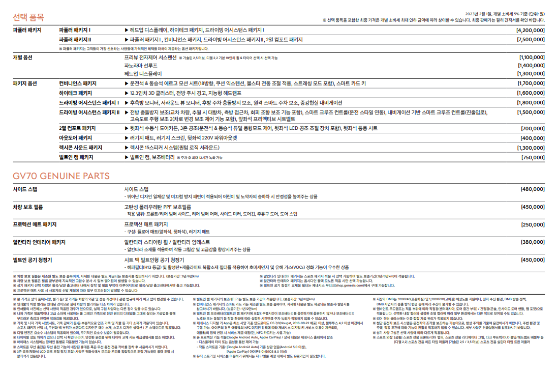제네시스 gv70 옵션