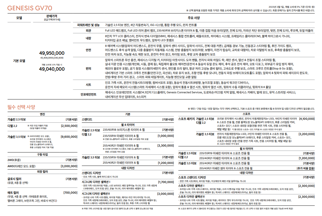 제네시스 gv70 가격표
