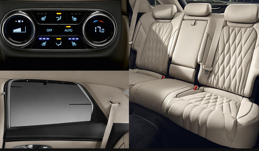 독립제어형 전자동 에어컨(운전석 및 조수석 이중온도조절, 뒷좌석 전석 공조조절, 자동 서리제거, 외부공기 유입방지 제어, 후석 송풍기 포함)