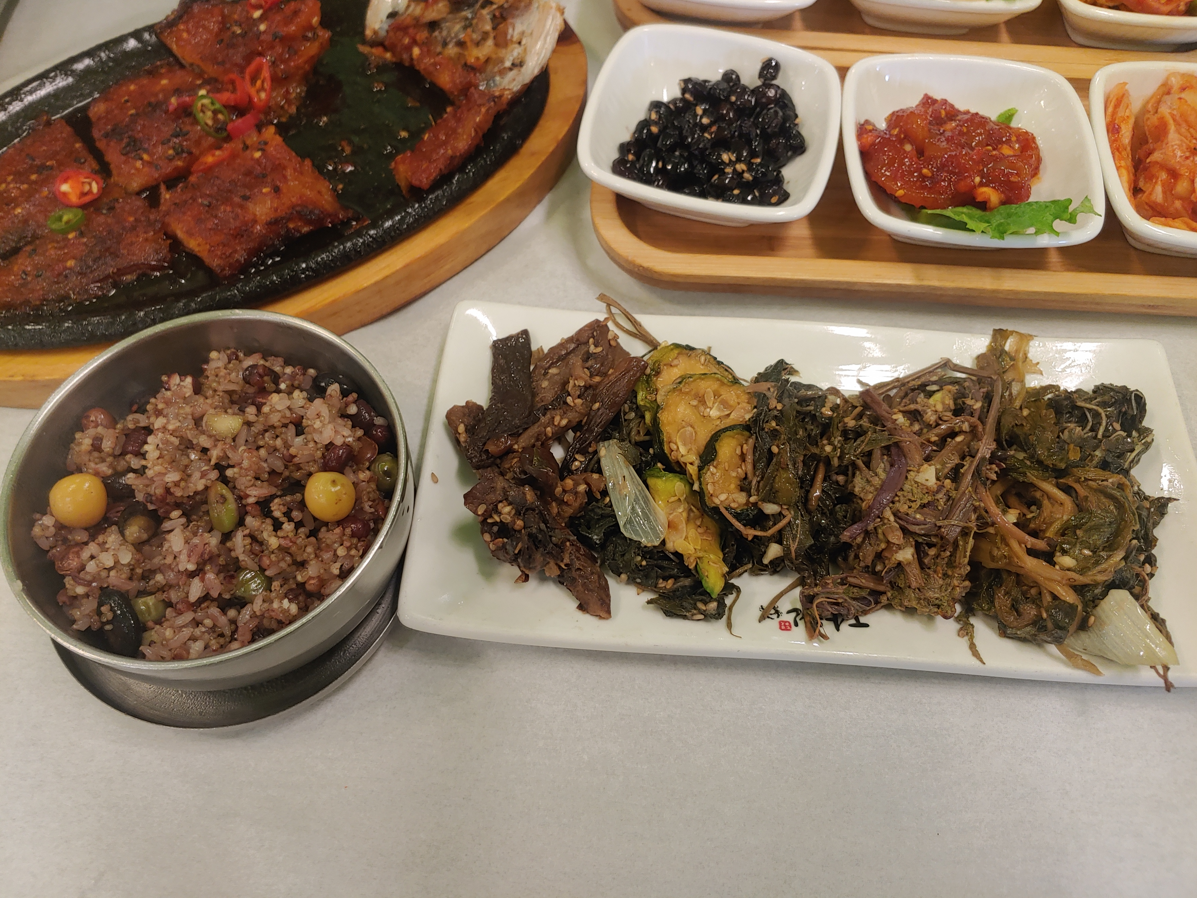보름달이라 통곡물과 야채를 곁들인 밥이 나왔다.