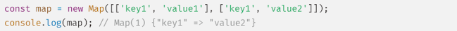 Map 생성자에 인수로 전달된 iterable 객체에 중복 키가 있는 요소가 있으면 값을 덮어씁니다. 따라서 중복 키가 있는 요소는 Map 개체에 존재할 수 없습니다.